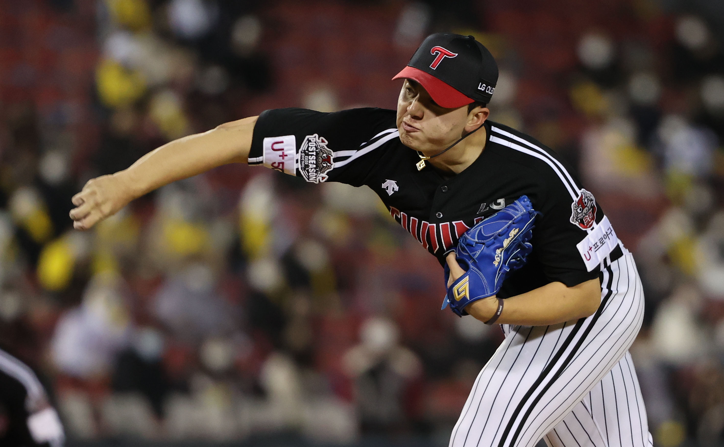LG 이민호는 쌀쌀한 날씨에도 반팔을 입고 나왔다. 과거 LG의 머리 긴 왼손 투수 역시 한 겨울에도 반팔을 입고 뛰어 나와 씩씩하게 공을 던졌다. 연합뉴스