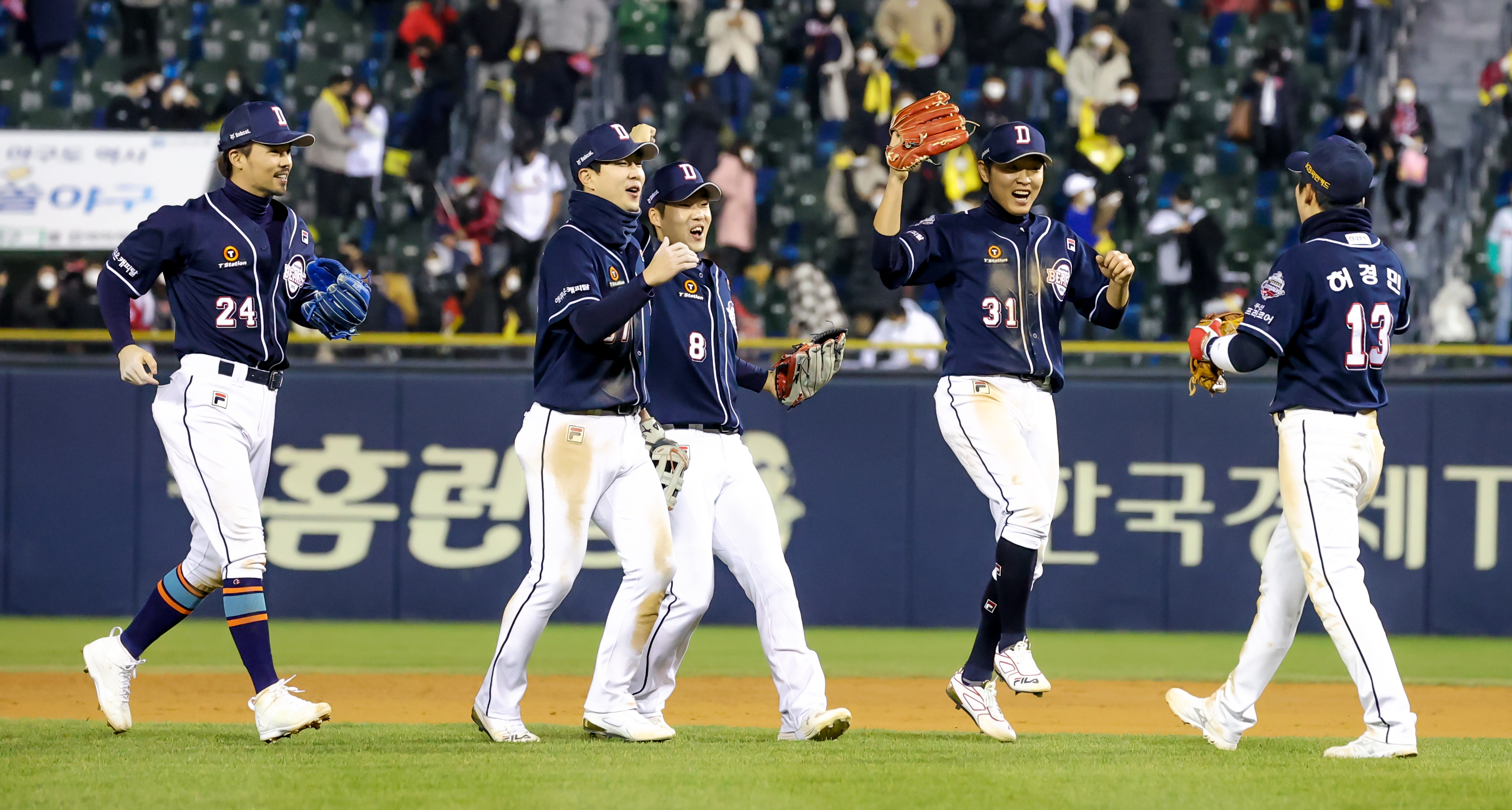 이후 홈(Home)을 향한 싸움이 계속됐다. 한 점 차 였지만 한 점을 더 내는 팀이 이기는 흐름이었다. 어떻게든 홈(Home) 가까이 한 베이스 씩을 더 가야 한다. LG는 7회말 무사 1루, 채은성이 2-0 유리한 카운트에서 승부를 걸었다가 5-4-3 병살타로 물러났다. 8회말 무사 1루, 대타 박용택의 타구는 3루 더그아웃 바로 앞에서 잡혔다. 1루주자 이천웅이 2루로 뛰었고, 2루수 오재원과 충돌하는 사이 공이 뒤로 빠졌다. 이때 홈(Home)에 더 가까운 3루로 가지 못한 것은 결정적 승부처 중 하나였다. 그라운드 내 콜 플레이가 잘 이뤄지지 않았고 이천웅은 공이 빠진 사실을 늦게 알았다. 정규시즌 때는 없었던 1만 관중의 함성 때문이었을까.